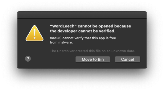 On macOS, you will probably not be allowed to open the utility, with an error as shown below: